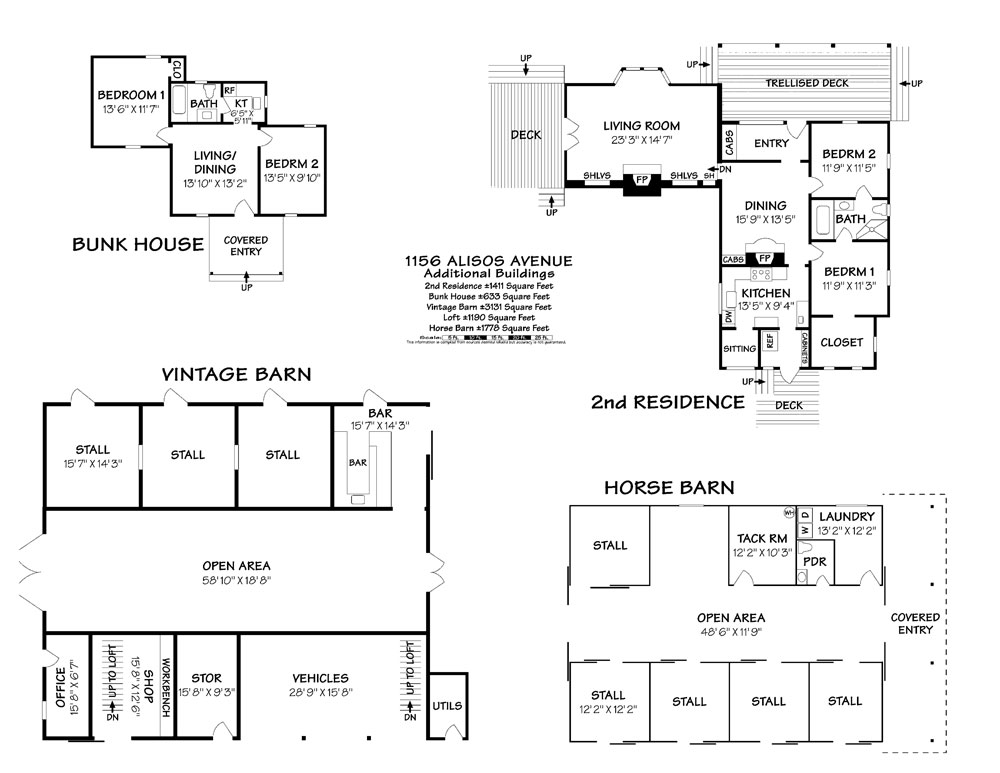 At the ranch headquarters, there is a quaint 1920s 2 bedroom, 1 bath house and a 2 bedroom, 1 bath "bunk house." A charming turn-of-the-20th century barn has been completely restored and now has 3 horse stalls and equipment storage bays. It also features an entertainment and dining facility with a bar that opens to lawns dominated by a gigantic historic oak. The setting is idyllic, scenic and perfect for family get-togethers, picnics or events. A tree house (not permitted!) overlooks the area from a nearby hill.
