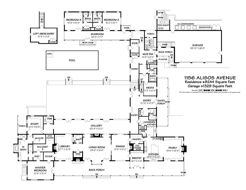5 fireplaces (Family & Dining Rooms, Library, Gallery, Porch)